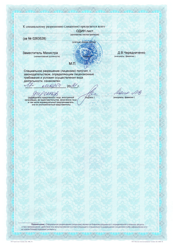 Специальное разрешение (Лицензия) №02040/8440